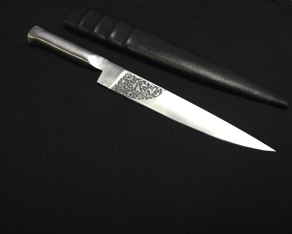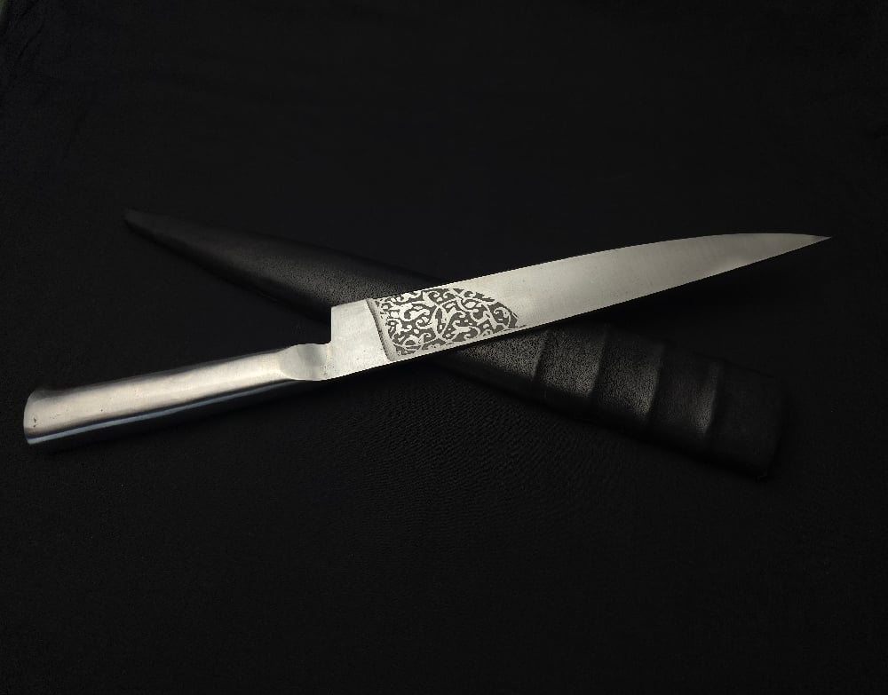 This Limited Edition Sarbloh Kard from Khalsa Forge is a handcrafted masterpiece that embodies the purity, strength, and spirit of the Khalsa. Forged entirely from pure iron (sarbloh), this kard has been hand-polished to a bright reflective finish and engraved with a traditional motif near the hilt, showcasing the skill and dedication of our artisans. Measuring 14 inches in blade length and 17.5 inches overall with the miaan, it carries a graceful yet commanding presence. The solid sarbloh handle is seamlessly integrated for balance and durability, while the black miaan provides protection and completes the elegant look. Forged in small batches by Khalsa Forge’s skilled craftsmen, this kard honours the Sikh martial tradition and the sacred symbolism of sarbloh, representing purity, strength, and unwavering faith. Ideal for ceremonial use, spiritual display, or as a treasured collector’s piece, it stands as a timeless representation of Sikh heritage. Once this edition is sold out, it will not be made again, making it a truly rare and meaningful creation from Khalsa Forge.